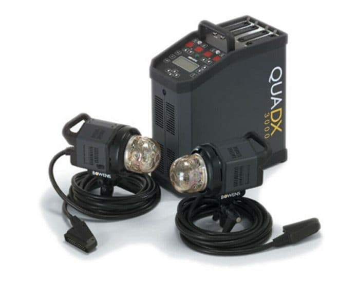 BOWENS QUADX 3000 STUDIO FLASH PACK AND FOUR QUADX 3000 HEADS.